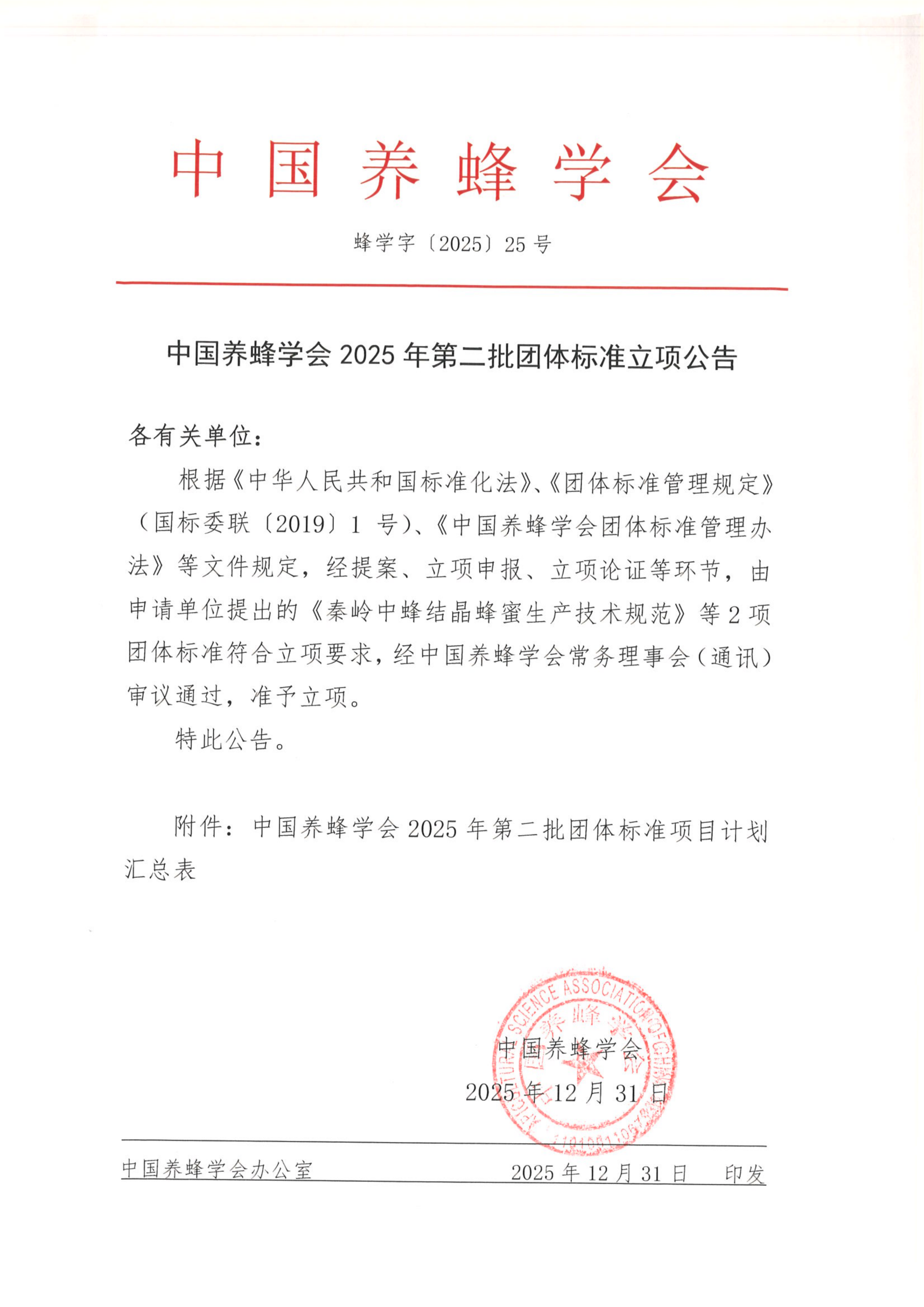 中国养蜂学会关于征求《秦岭中蜂蜂蜜》(征求意见稿)等3项团体标准意见的通知