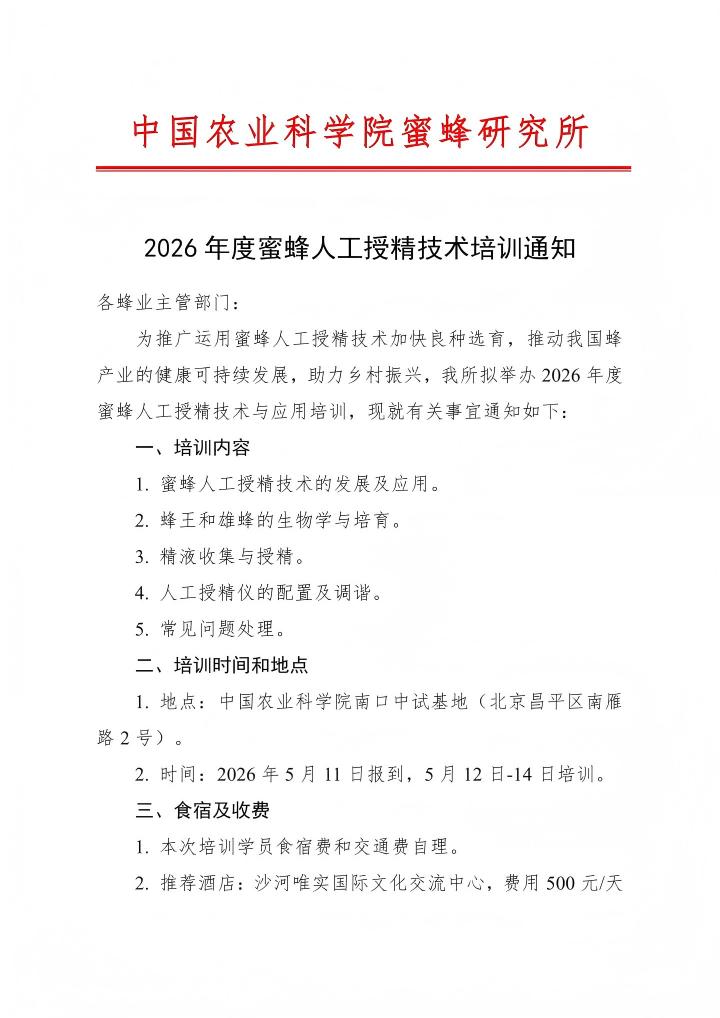 转发通知丨2026 年度蜜蜂人工授精技术培训通知