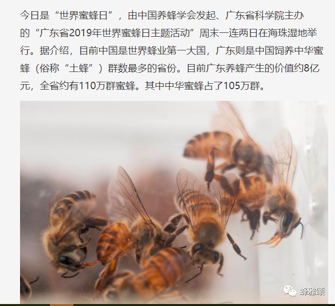 5月18-19日,由中国养蜂学会主办,广东省科学院、广东省生物资源应用研究所、广东省养蜂学会、广东广昆园蜂业有限公司、广东省生物工程研究所、广东省农技协会、广东省农技学会联合体、广州海珠国家湿地公园联合承办的2019年“5·20世界蜜蜂日”主题活动粤港澳大湾区主会场活动,成功地在广州海珠国家湿地公园举办。中国养蜂学会副理事长罗岳雄、广东省科学院对外合作部副部长裘钢、广东省生物资源应用研究所所长邹发生、广东电视台著名新闻评论员曹磊等领导和嘉宾出席了活动启动仪式。