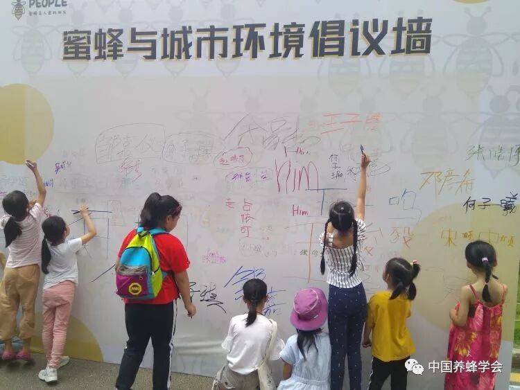 ▲参加活动的青少年在“蜜蜂与城市环境倡议墙”上签名