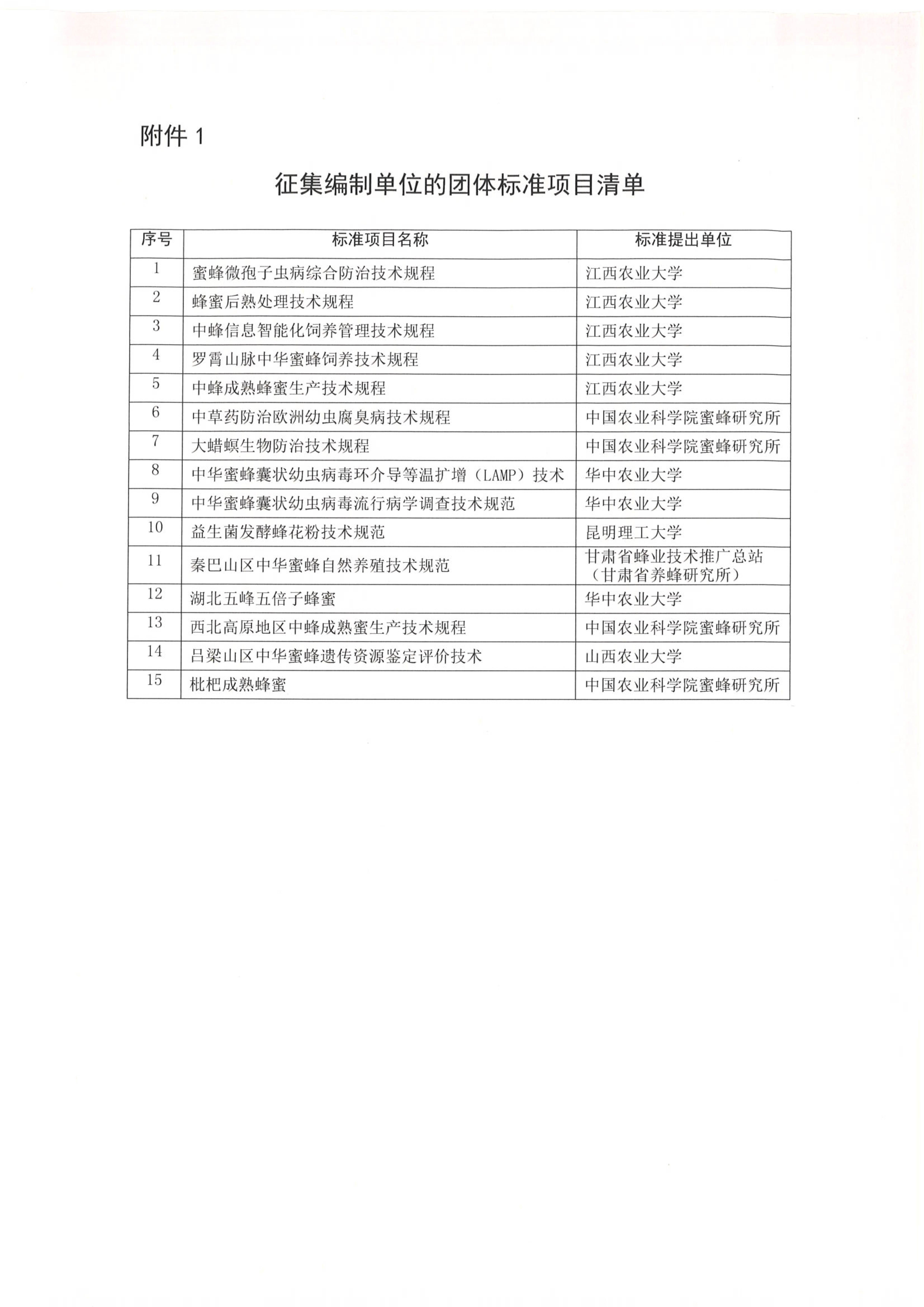 关于中国养蜂学会2024年度第二批团体标准公开征集编制单位的通知