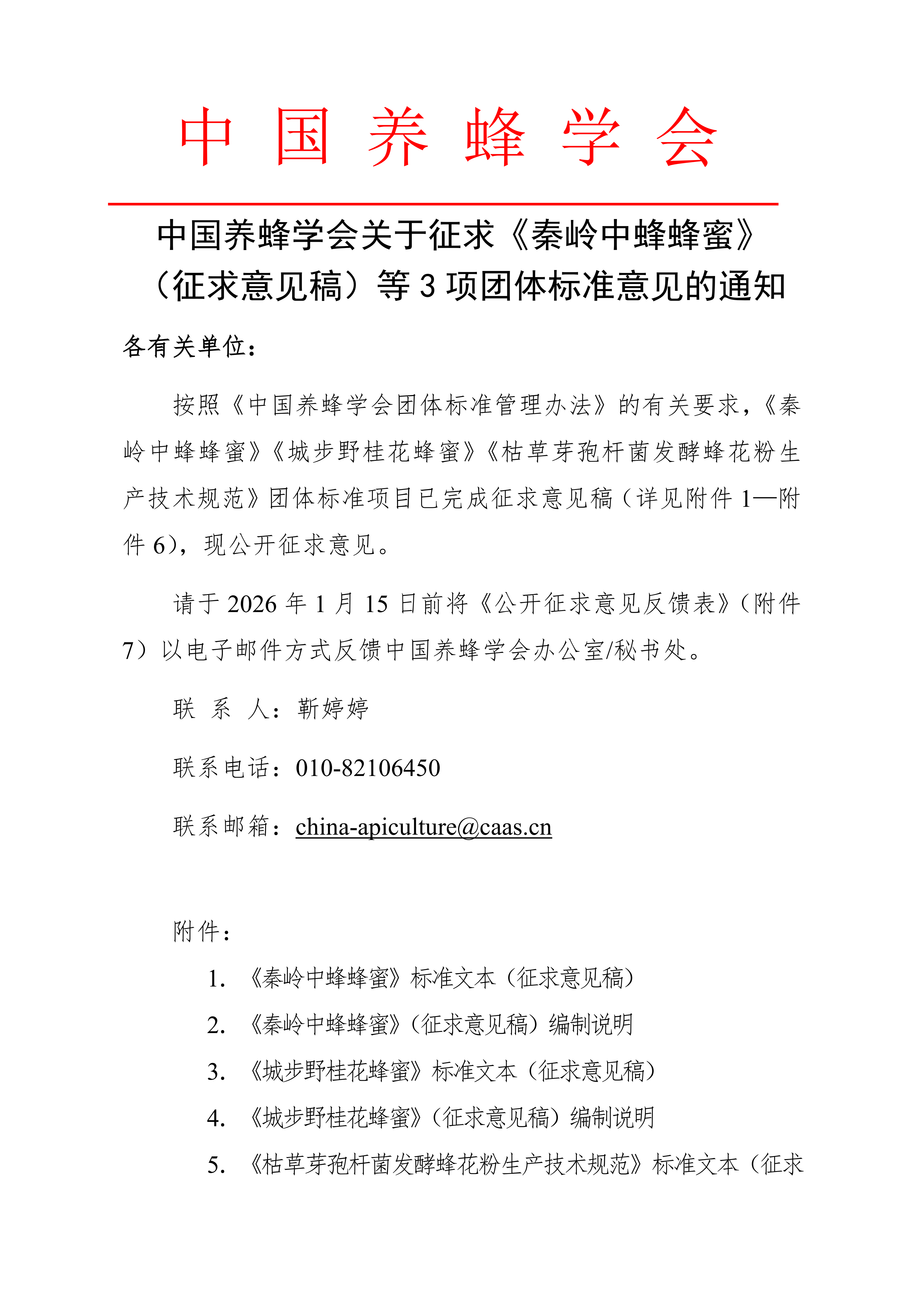 附件7 中国养蜂学会团体标准征求意见反馈表