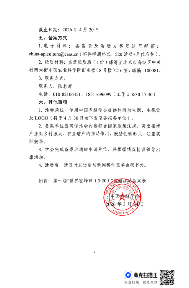 关于举办2026年第十届“世界蜜蜂日(5·20)”主题活动的通知