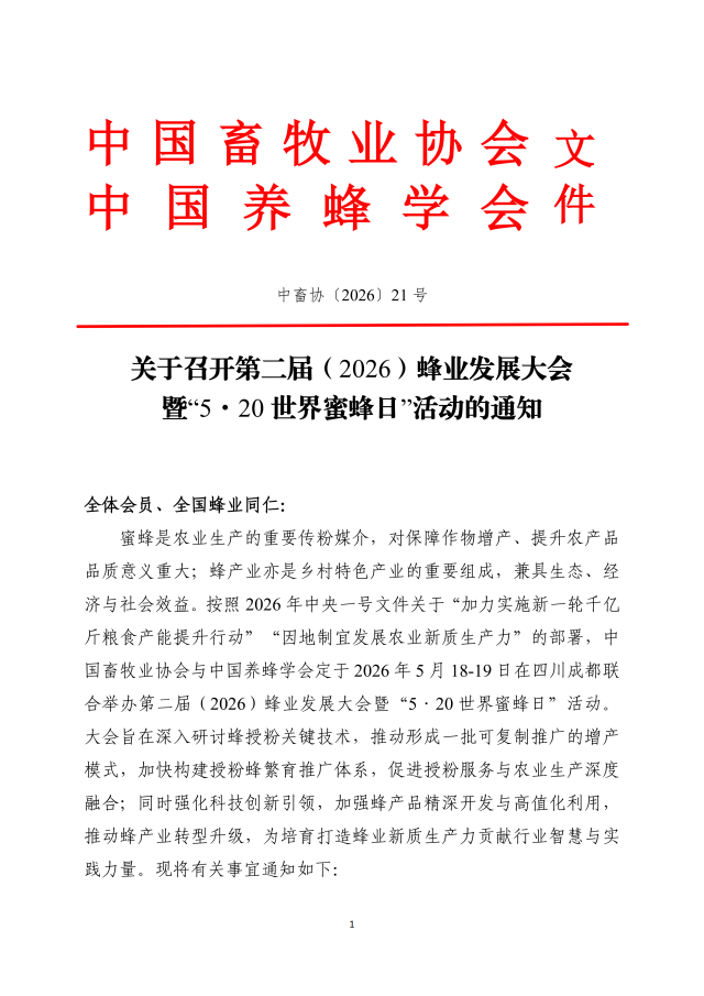 关于召开第二届(2026)蜂业发展大会 暨“5·20世界蜜蜂日”活动的通知