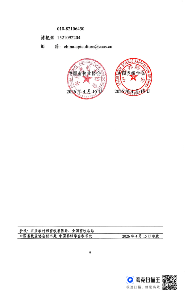 电话:010-82106450;82106451 邮编:100081 邮箱:china-apiculture@caas.cn